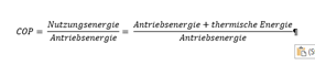 Das Verhältnis von Nutzungsenergie zu Antriebsenergie wird durch die Leistungszahl COP (Coefficient of Performance) beschrieben: