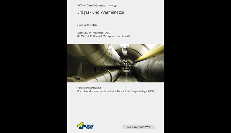 Der SVGW führt am 14. November2017 im Hotel Arte in Olten seine erste Fachtagung «Erdgas- und Wärmenetze» durch. Der Fokus liegt auf dem Thema Koexistenz der Infrastrukturen im Hinblick auf die Energiestrategie 2050. An der Fachtagung spricht auch Daniel Büchel, Vize-Direktor Bundesamt für Energie. Folgende Themen kommen zur Sprache: