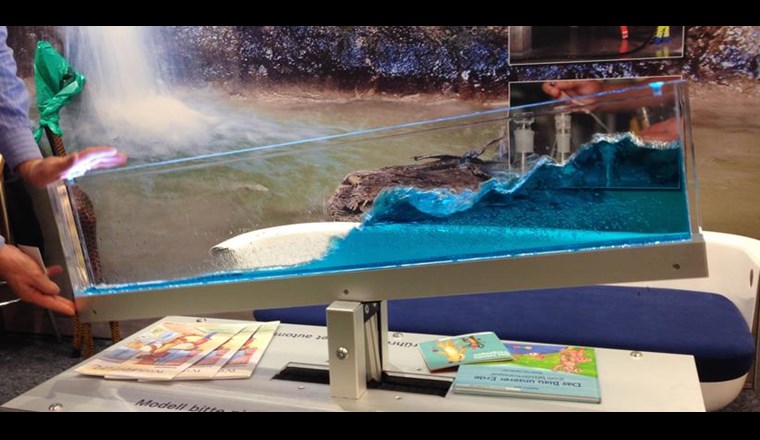 Ein Kubikmeter grosser Würfel aus Wasser, ein Modell einer Wasserversorgung oder eine Welle, die man hier und her bewegen kann, wie es jede Brandung nicht besser könnte: Dies sind nur ein paar der «Tools» oder «Gadgets», die der SVGW seinen Mitgliedsunternehmen für einen «Tag der offenen Tür» , einen spannenden Gemeindeanlass oder ein grösseres Fest zur Verfügung stellen kann.