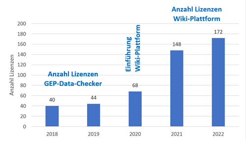 Erst seit der Einführung der Wiki-Plattform im Jahr 2020 stiegen die Anzahl Lizenzen – und damit die Einnahmen – stark an (s. Abb. 4), so dass die Kosten für den Betrieb und Unterhalt der Wiki-Plattform (exkl. Major Changes) mittlerweile gedeckt sind.