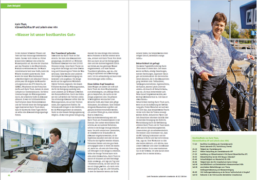 Im aktuellen Laufbahnheft «Umweltberufe» konnten wir das Berufsbild «Klärwerkfachfrau-/mann mit eidg. Fachausweis» vorstellen. Portraitiert wird die Klärwerkfachfrau Karin Thum. Sie gibt Einblick in ihren Arbeitsalltag, ihren Werdegang und die Motivation für ihren Beruf.