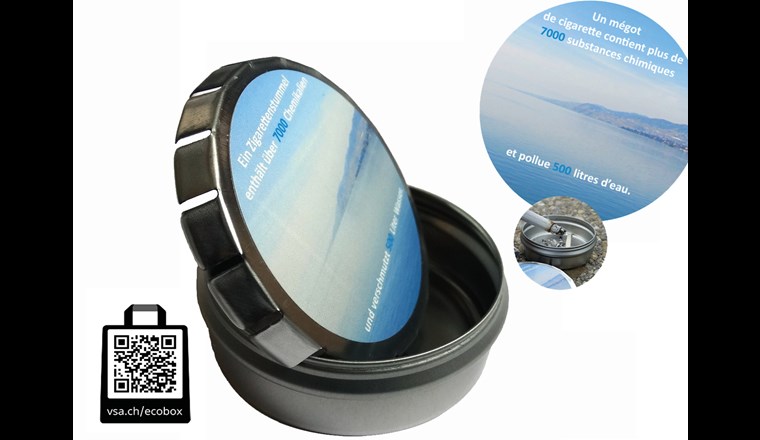 Gemeinden mit Seeanstoss, Fluss- und Schwimmbädern, Skigebieten oder Festivals können den «Taschenbecher» zu vorteilhaften Preisen beim VSA beziehen und an Raucher/innen abgeben. Denn weggeworfene Zigarettenstummel sind in Gewässern bereits in kleinsten Mengen tödlich für Wasserorganismen.