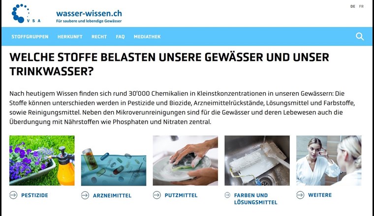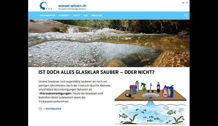 Mit wasser-wissen.ch will der VSA einen Beitrag zur Sensibilisierung durch Information leisten: Ein wachsender Teil der Bevölkerung wird sich der Auswirkungen von Stoffeinträgen in die Gewässer als Mikroverunreinigungen bewusst.