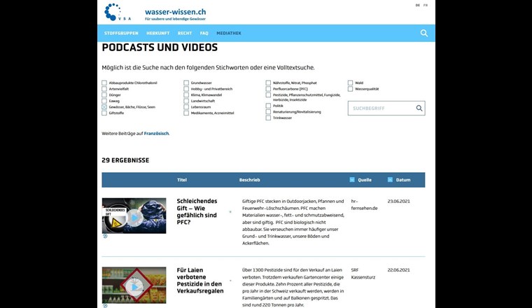 In der Mediathek wurden bestehende Podcasts und frei zugängliche Video-Beiträge zum Thema Mikroverunreinigungen und Wasserqualität aus den letzten Jahren gesammelt und verfügbar gemacht.