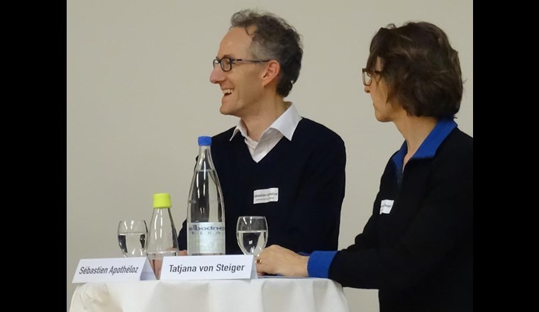 Anhand des Beispiels der mittlerweile achtjährigen Kooperation zwischen den Städten Lausanne und Nouakchott (Mauretanien) hat Sébastien Apothéloz (Service de l’eau Lausanne) aufgezeigt, was zum Erfolg dieser Partnerschaft geführt hat. Er betonte dabei, dass der Wissens- und Erfahrungsaustausch, der im Schnitt - dank neuen Medien - täglich erfolgt, den zentralen Mehrwert der Partnerschaft darstellt. Andreas Schöni (NV-Terra) berichtete anschliessend von seinen Erfahrungen mit einem Wasseraufbereitungsprojekt, das von Swiss Bluetec Bridge unterstützt worden ist. Eine grosse Herausforderung bei der Umsetzung waren die sozio-kulturellen Unterschiede und die Suche nach geeigneten Partnern vor Ort. Die Frage der Moderatorin Ellinor von Kauffungen, ob es die Aufgabe der DEZA sei, schweizerische Gemeinden für mehr Engagement in Entwicklungsländern zu ermuntern, hat Tatjana von Steiger (DEZA) ganz klar bejaht. Es stehe nicht nur im Verfassungsauftrag, globale Verantwortung zu übernehmen, sondern die Schweiz habe auch ein klares Interesse daran, ihr Wissen in Entwicklungsländern einzubringen - insbesondere in Bereichen, in denen sie viel Erfahrung hat. Roland Gröbli (Georg Fischer) hat schliesslich einen Einblick in die Unternehmensstiftung "Clean Water" gegeben und die konkreten Nutzen und Herausforderungen eines solchen Engagements aufgezeigt. Eine grosse Chance sieht er darin, dass die heutigen Technologien es ermöglichen, die Wirkungen von Projekten einfach, zeitnah und ortsunabhängig zu messen, was wiederum wichtig ist, um das Vertrauen von Geldgebern zu erhalten. Im Schlusswort hat Martin Jovanov (Swissaid) festgehalten, dass Digitalisierung in Entwicklungsprojekten zunehmend ein Thema ist und unter anderem den Zugang zu wichtigen Informationen und Wissensaustausch vor Ort aber auch über Ländergrenzen hinweg ermöglicht.