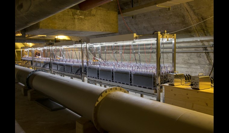 «Wir verfolgen ein dreifaches Ziel: Wir wollen den Stromverbrauch der Kläranlage senken, das Abwasser aufbereiten und Strom erzeugen», erklärt Fischer. Die Ende 2018 in Betrieb genommene Brennstoffzelle erzeugt nicht nur ausreichend Strom, um mehrere Lithium-Batterien zu speisen, sondern ermöglicht auch die kostenlose Aufbereitung des Abwassers. Das 14 Meter lange System – das längste der Welt – besteht aus 64 in Reihe geschalteten Brennstoffzellen.
