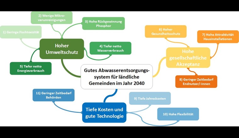 In der Schweiz ist der Anschlussgrad an zentrale Abwassersysteme flächendeckend hoch. Mehr und mehr Gemeinden auch im ländlichen Raum müssen sich in den nächsten Jahren um die Erneuerung ihrer Infrastruktur Gedanken machen. Ohne Subventionen könnten zentrale Systeme in dünn besiedelten Regionen für die Gemeinden teuer werden. Modulare Technologien für dezentrale Abwassersysteme versprechen, günstiger und flexibler zu sein. Einige können Stoffströme separieren und die Rückgewinnung von Ressourcen aus dem Abwasser verbessern. Ihr Einsatz hat aber eigene, spezifische Nachteile. Eine gute Entscheidung für ein zukünftiges Abwassersystem braucht daher die Abwägung der Vor- und Nachteile aller Systeme unter Einbeziehung der Erwartungen und Bedürfnisse lokaler Akteure.